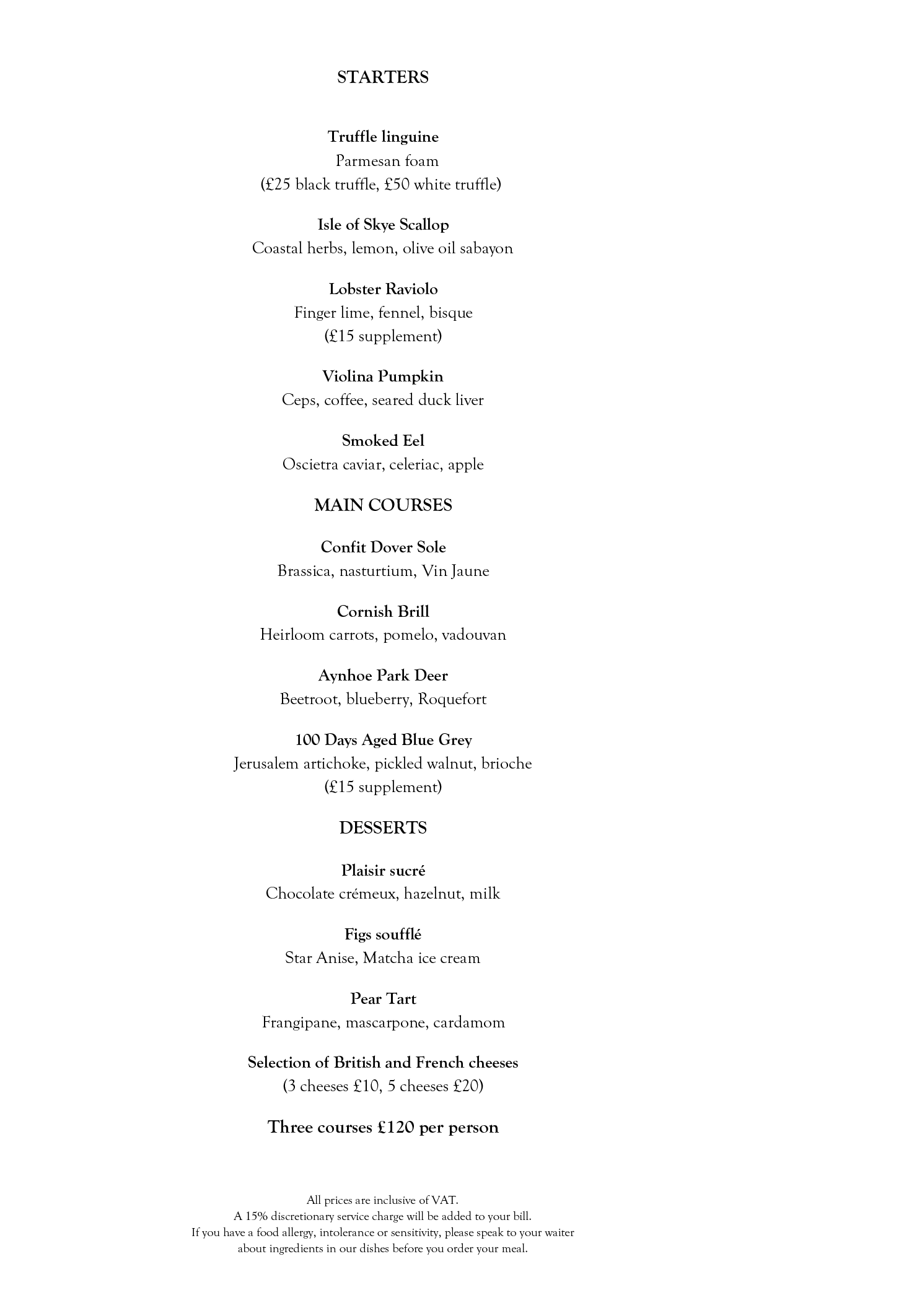 Menus at Pétrus by Gordon Ramsay